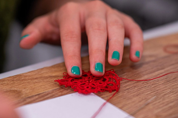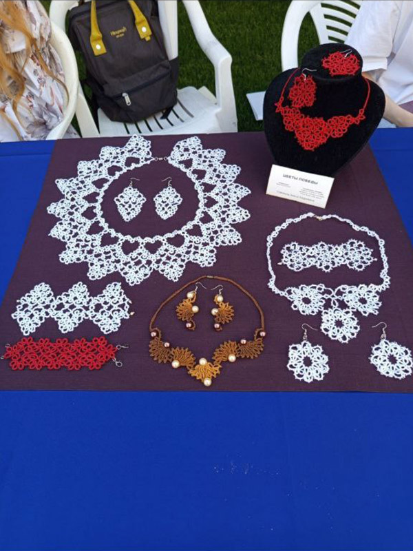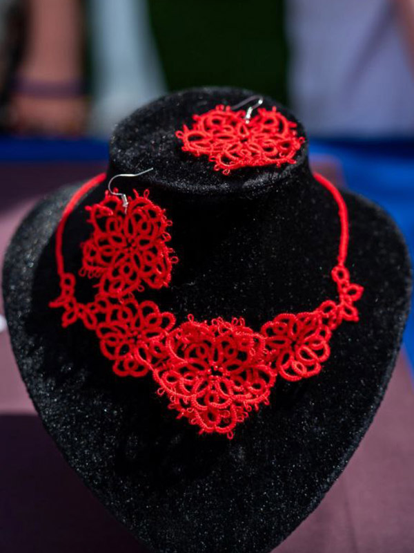 Сложность в том, что на выполнение работы давался всего 1 день. Алина смогла удивить жюри своим комплектом украшений "Цветы Победы". Ярко красные ажурные гвоздики - колье и серьги, выполнены в сложной технике плетения кружев - фриволите. Студенты отделения декоративно-прикладного искусства эту технику изучают на 4 курсе. А Алина познакомилась с ней еще первокурсницей. Преподаватель Ольга Сергеевна Иващенко увидела в девушке интерес и показала технологию. Студентка увлеклась, кропотливо ежедневно практиковалась. И как итог - заслуженная победа на Всероссийском конкурсе.