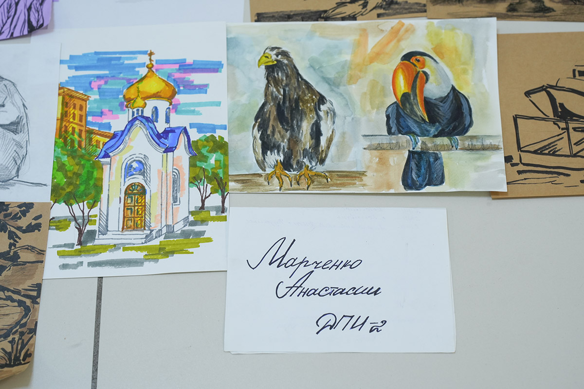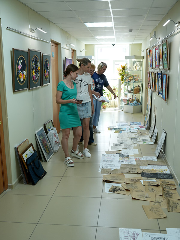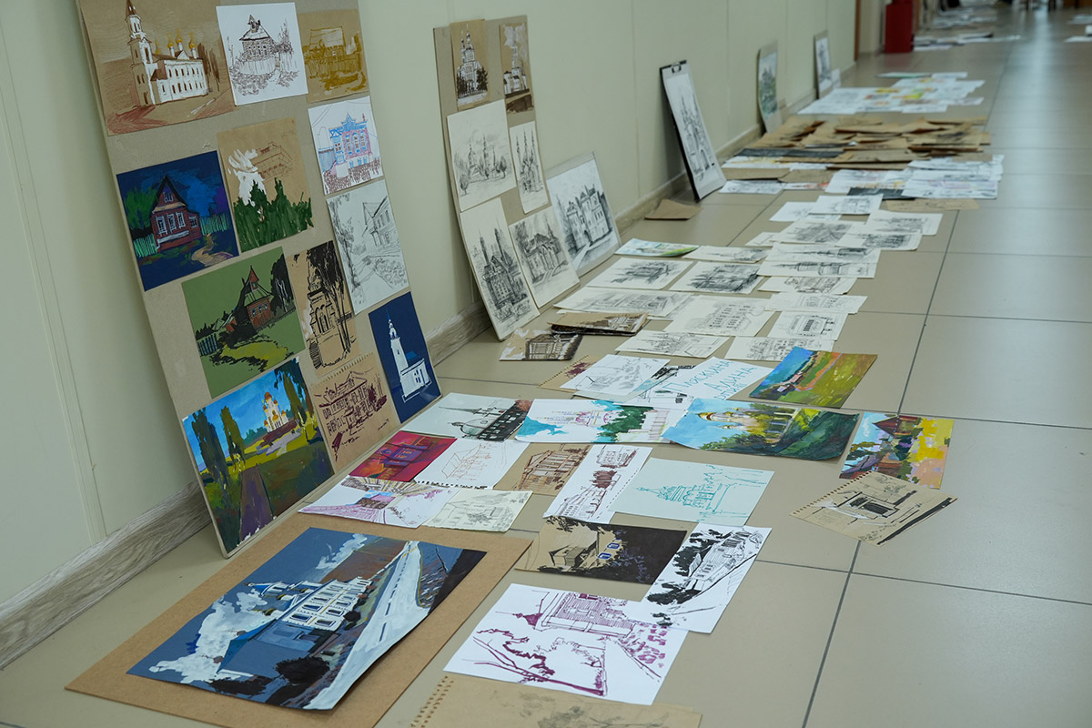 По 40 зарисовок и набросков! 2 коридора понадобились, чтобы показать комиссии работы студентов 1-3 курсов отделения декоративно-прикладного искусства, которые они привезли из Томска.