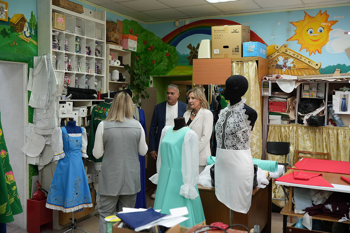 Директор ЕККИ побывала в Творческом Ресурсном Центре колледжа. Здесь изготавливают реквизит, шьют сценические костюмы и обувь не только для нужд НОККиИ, но и для творческих коллективов области. Например, сейчас в работе заказ от ансамбля из Красноозёрского района.
