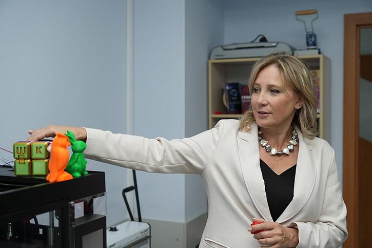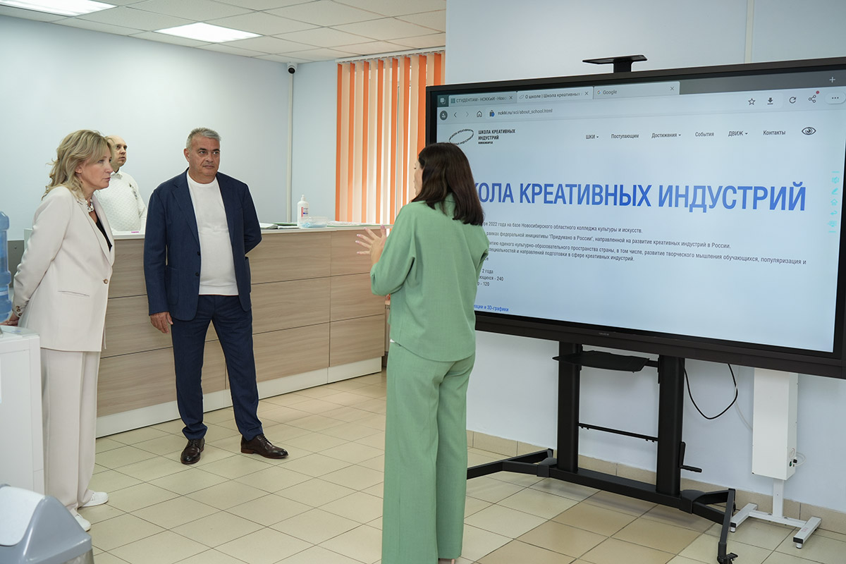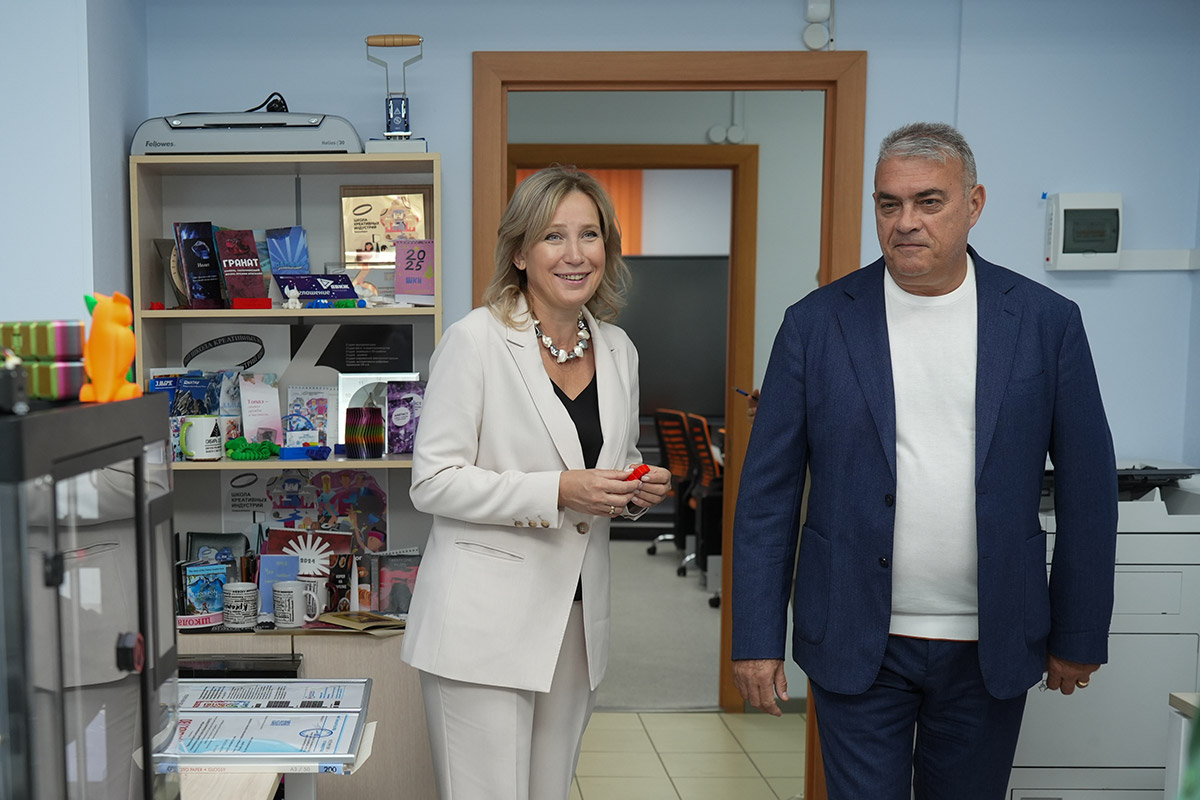 С не меньшей гордостью Аркадий Борисович и директор ШКИ Елена Васильевна Ляшенко показали гостье из Татарстана классы, оборудование и работы учеников Школы креативных индустрий.