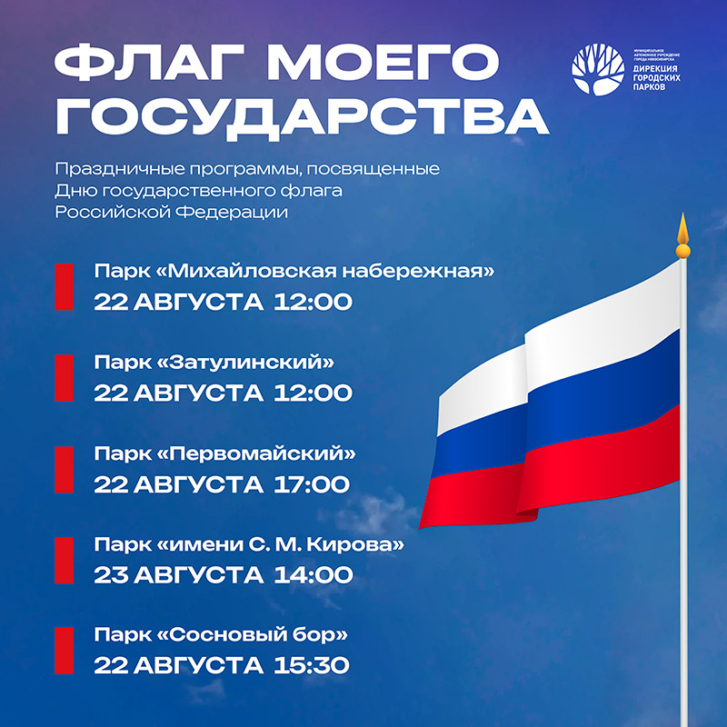 Завтра, 22 августа, День Государственного флага России! Культурные учреждения Новосибирска к этой важной дате подготовили более 230 мероприятия. Жители и гости Новосибирска смогут посетить многочисленные мероприятия, посвященные Дню флага: массовые гуляния, концерты, флэшмобы...