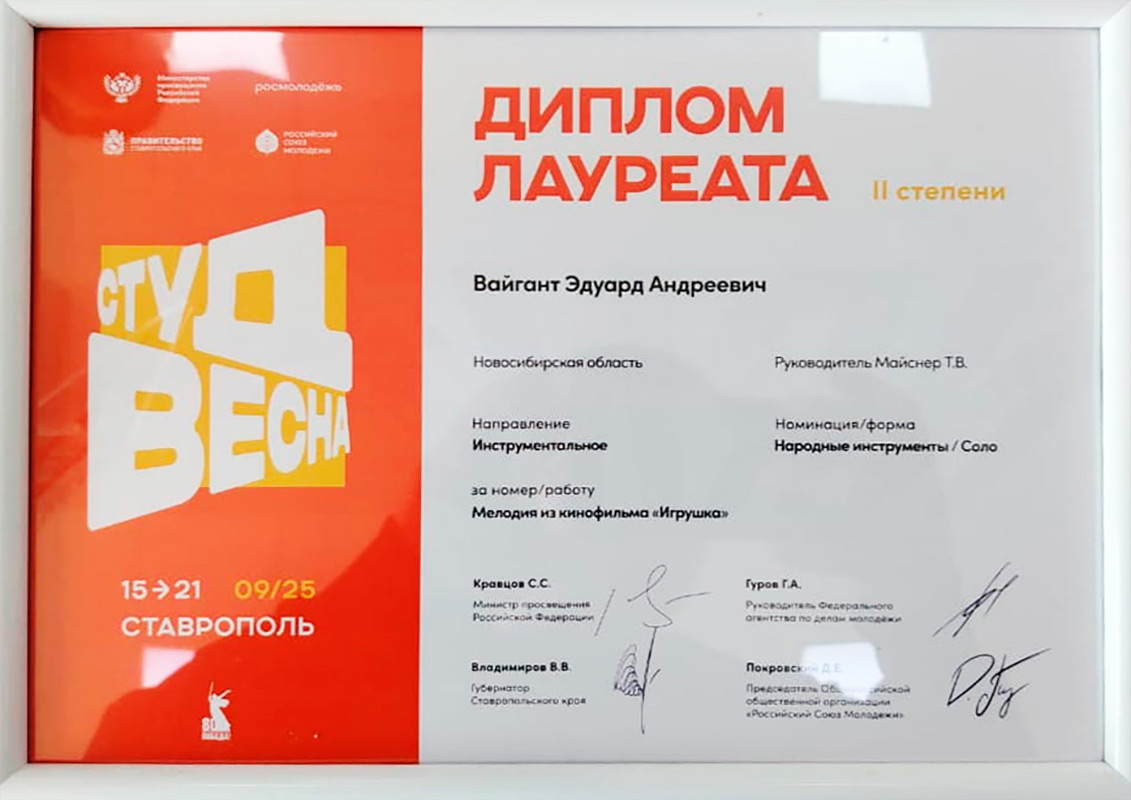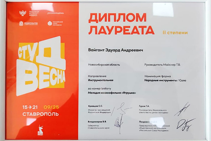 Поздравляем Эдуарда и его педагога Татьяну Васильевну Майснер!