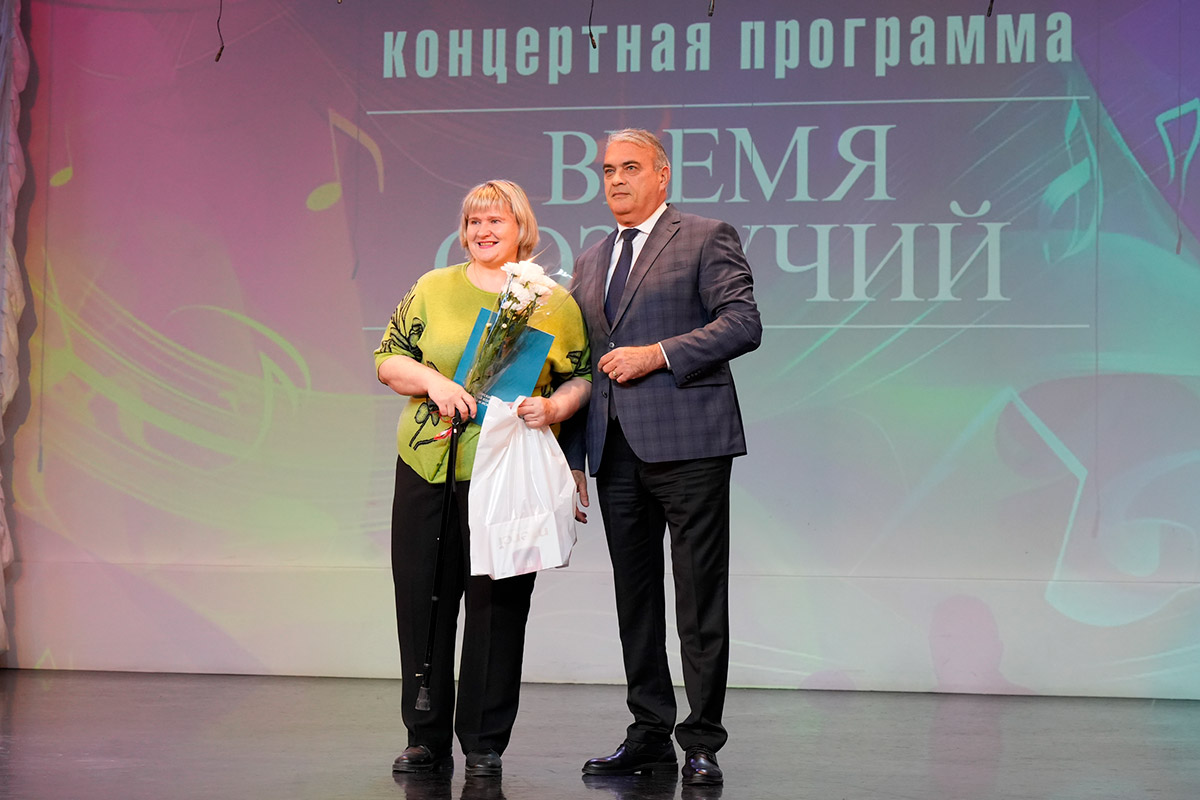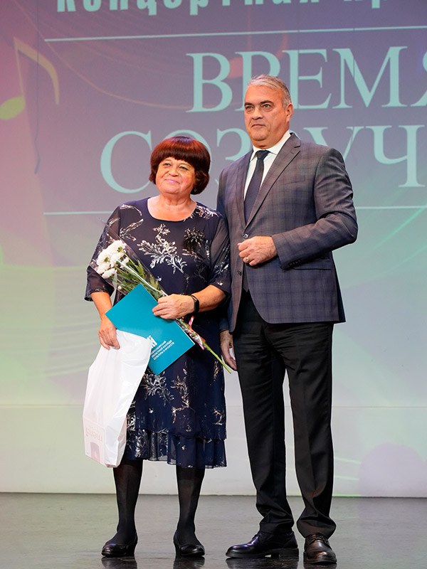 Торжественно со сцены поздравили ветеранов-юбиляров: Светлану Николаевну Андреенко, Ларису Геннадьевну Крикунову, Надежду Николаевну Лаврененкову, Наталью Михайловну Орловскую, Людмилу Ефимовну Юрлову.