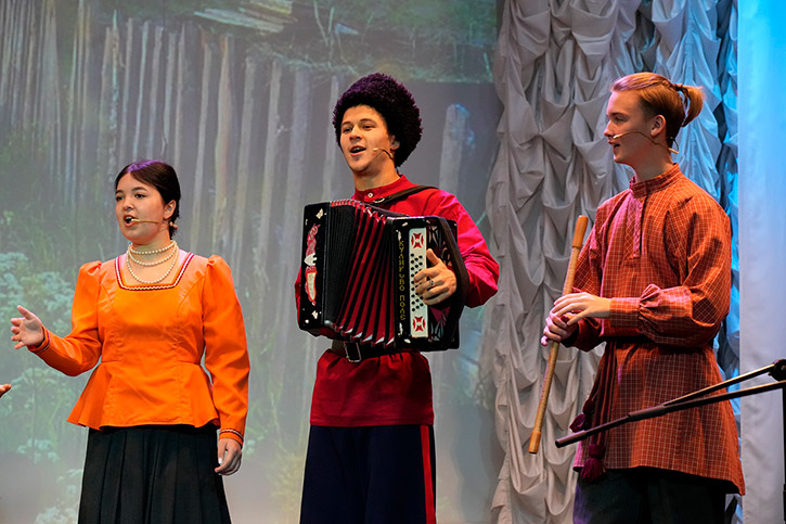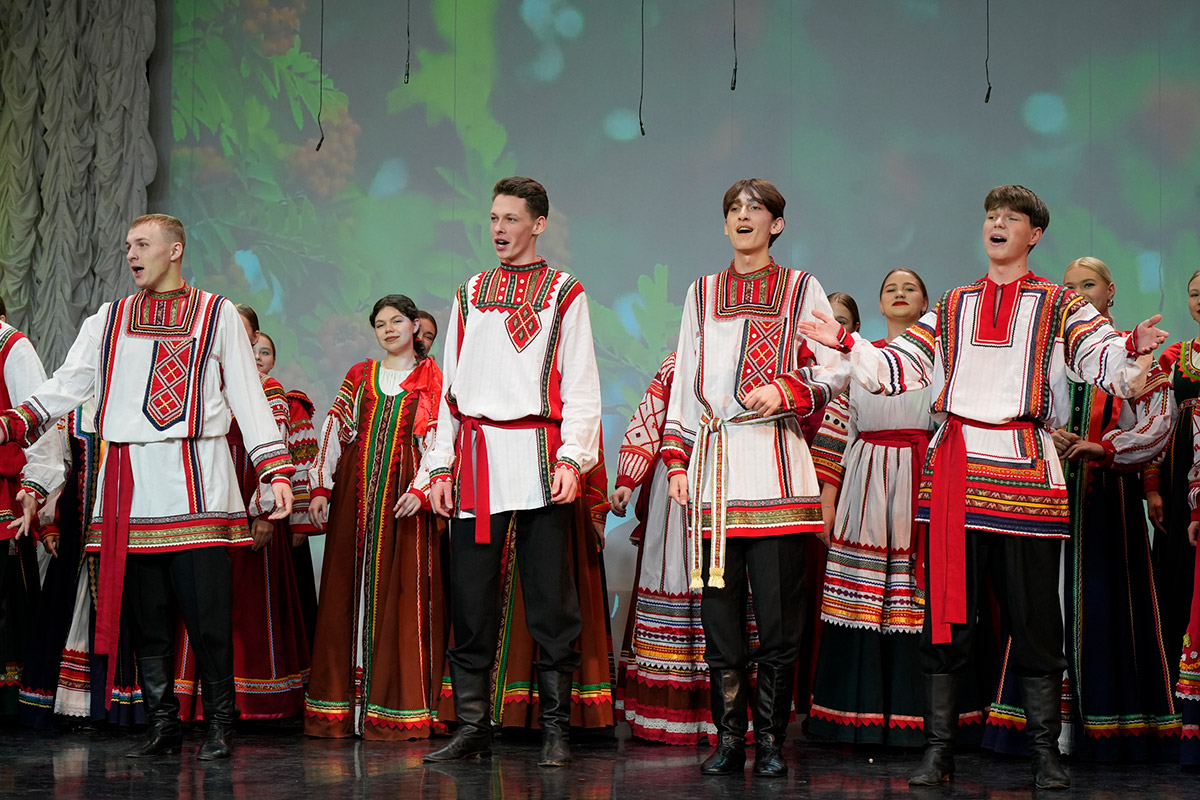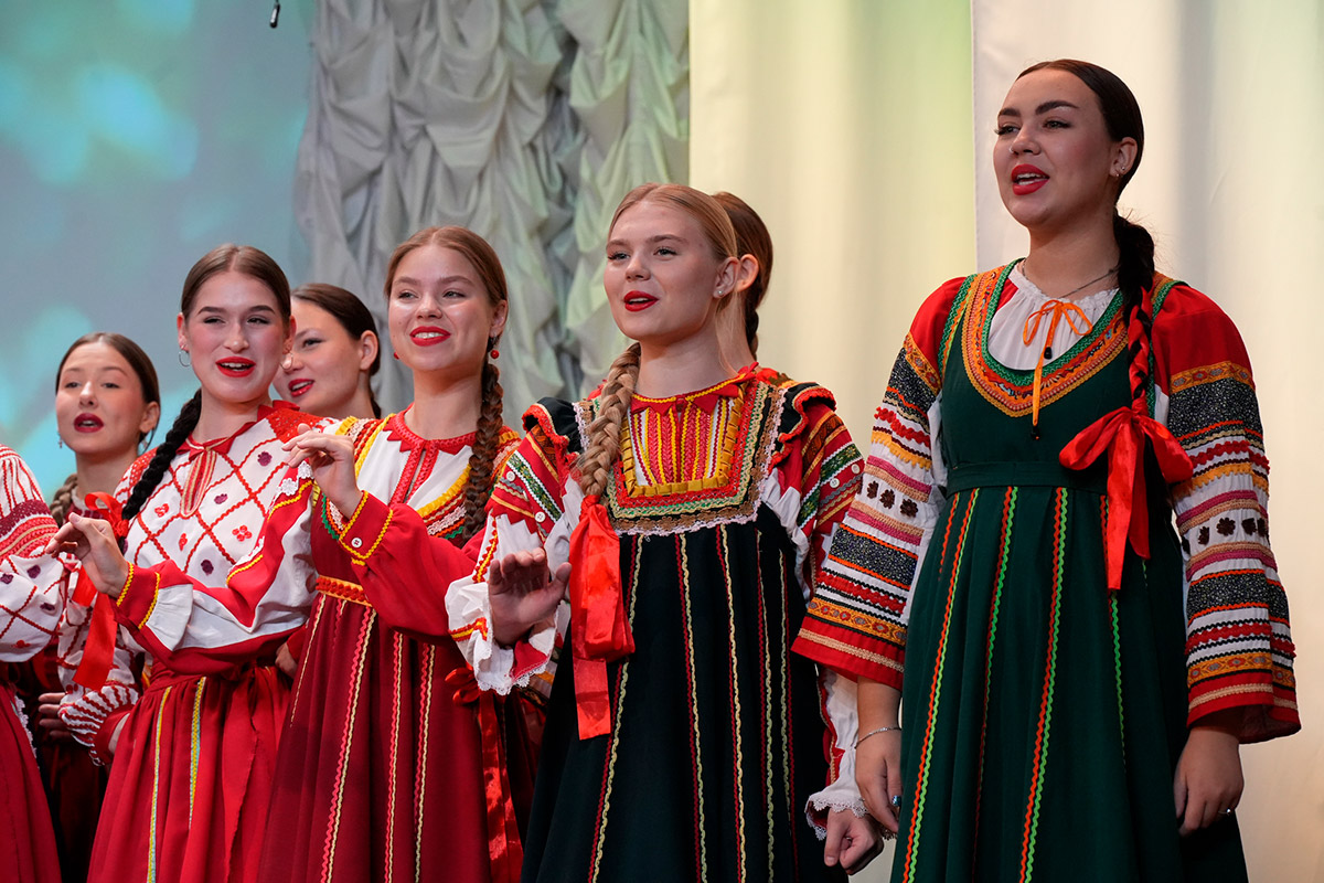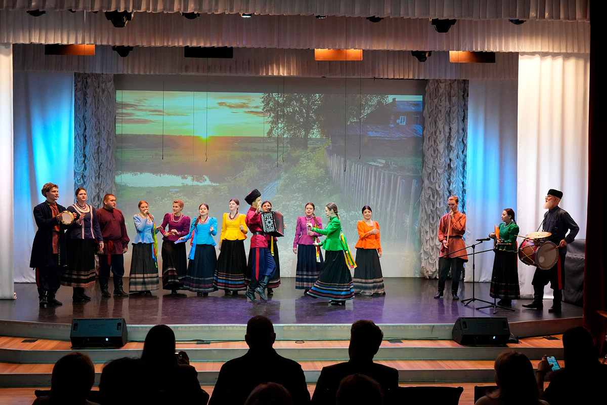 На сцену выходили: солист Илья Мальцев, дуэт гармонистов Анастасия Шмидт, Иван Любас, фольклорно-этнографический проект "Новоград", ансамбль народного танца "Сибирский сказ", хор отделения народно-певческого искусства.