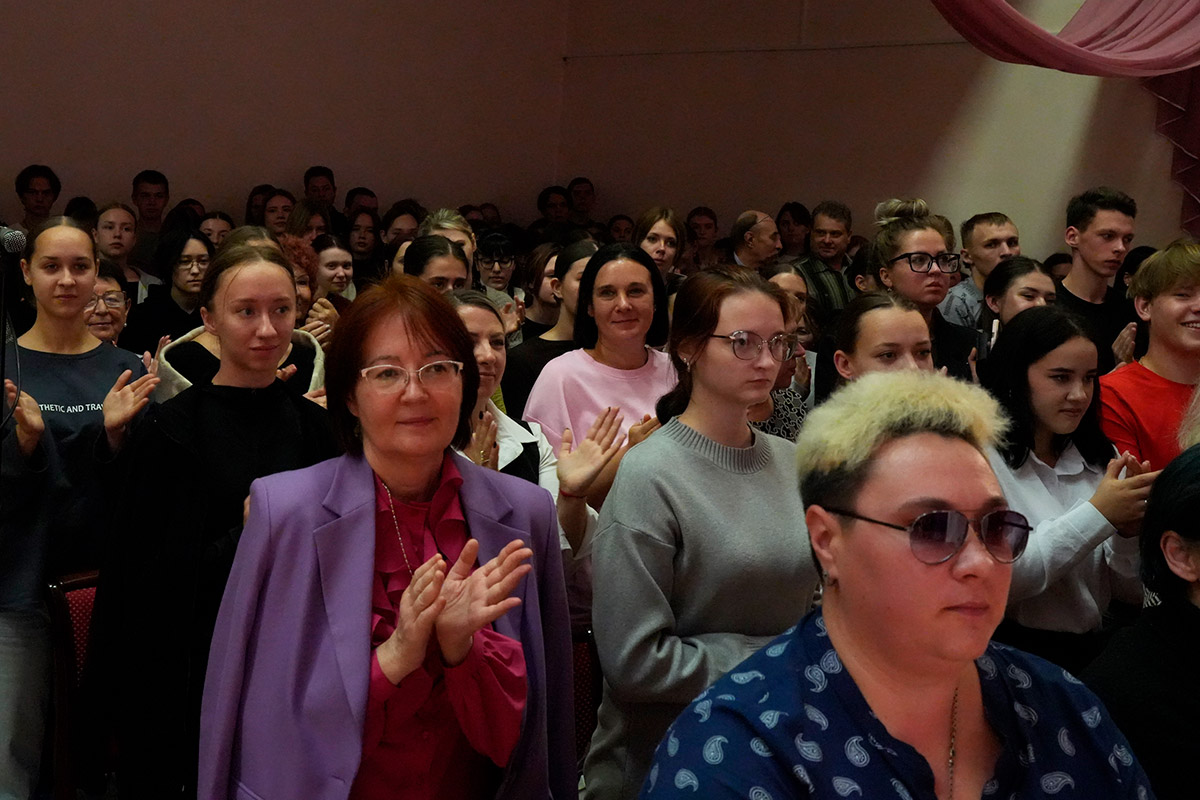 "Русское традиционное искусство, которое мы предлагаем, насыщенно смыслами", - отметил художественный руководитель сибирского хора Андрей Липихин. - "Наш жанр актуален, он востребован. Это те смыслы, которые сегодня человечество ищет... А колледж культуры - один из тех, кто готовит наших потенциальных артистов. И нам важно налаживать с ними связь на стадии формирования в профессии..."