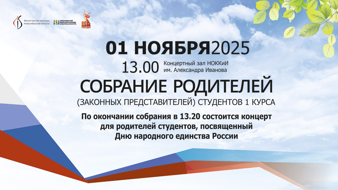 Новосибирский областной колледж культуры и искусств приглашает родителей (законных представителей) студентов первого курса на общее собрание.