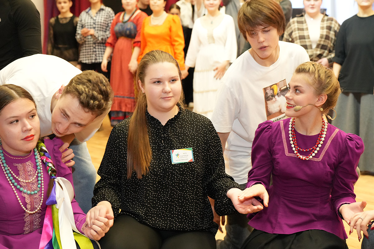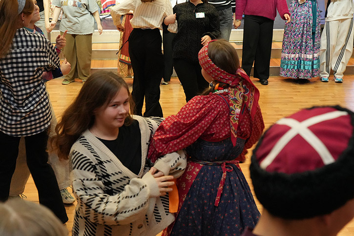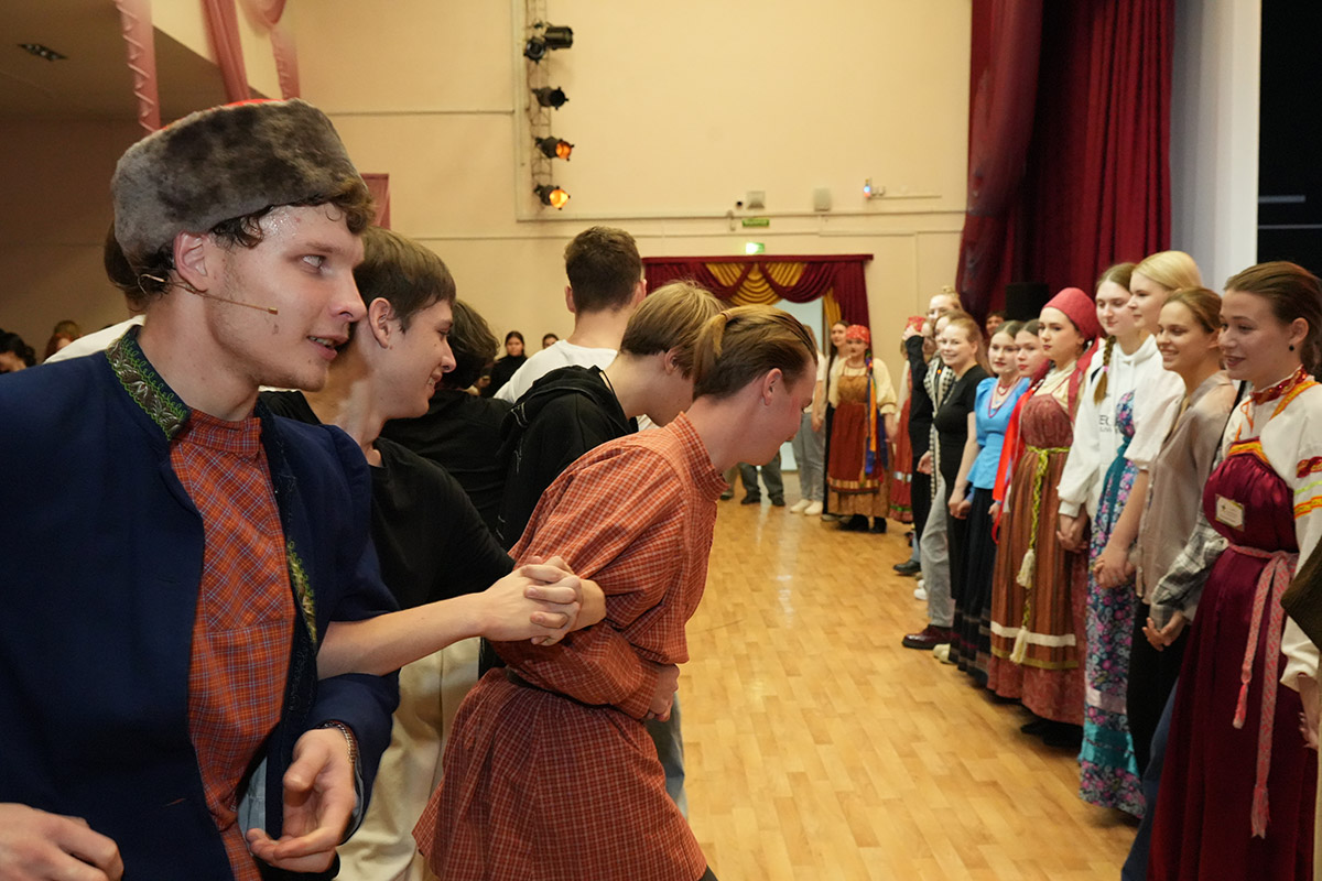 На время Этнотеки концертный зал НОККиИ превращается в большую танцевально-игровую площадку. Участники: школьники профильной смены СТАРТПРОФ, студенты всех отделений колледжа, будущие абитуриенты, выпускники и участники молодежных фольклорных коллективов Новосибирска.