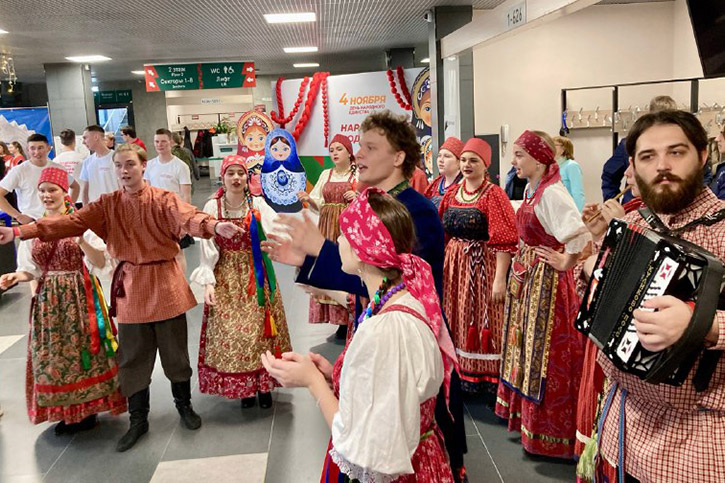 Студенты и преподаватели фольклорно-этнографического отделения в День народного единства приняли участие в масштабном региональном фестивале "Народное единство" в Локомотив-Арене.