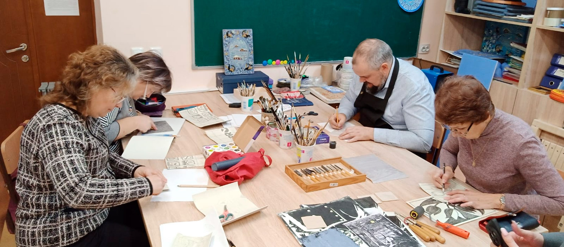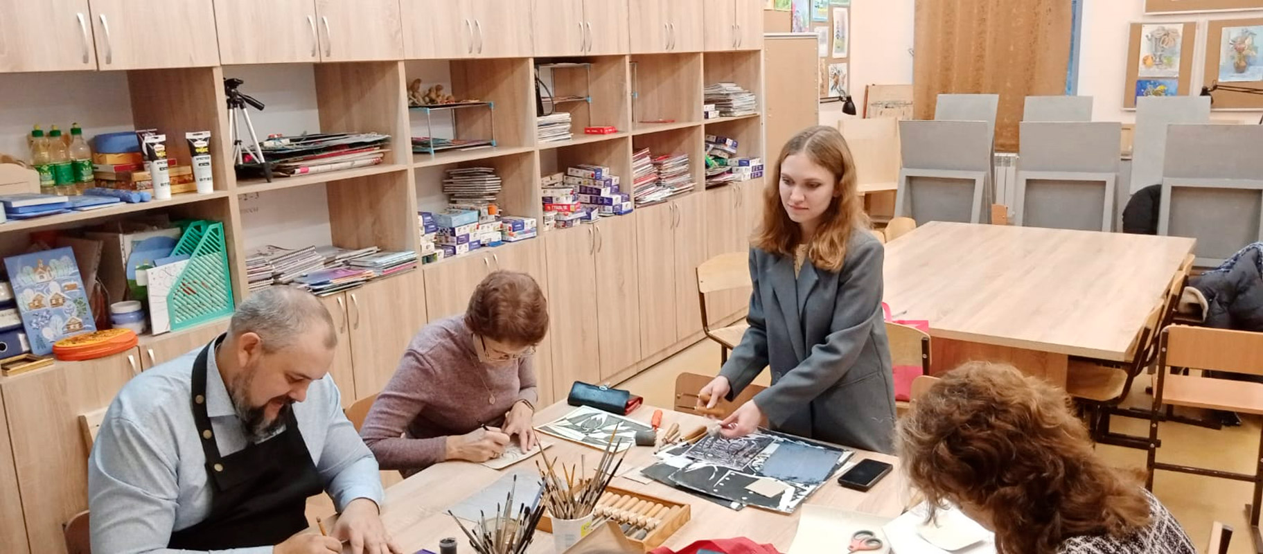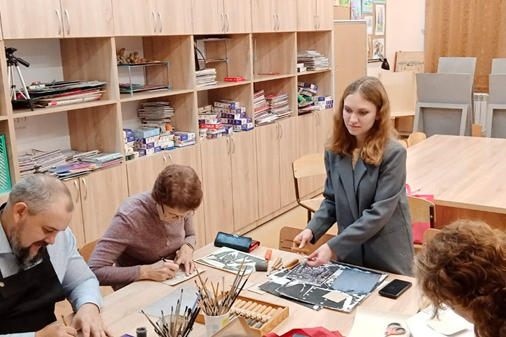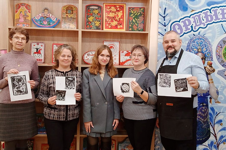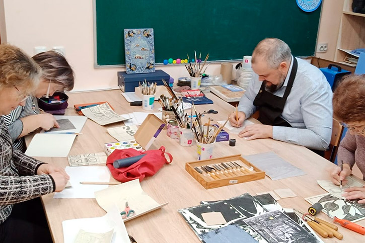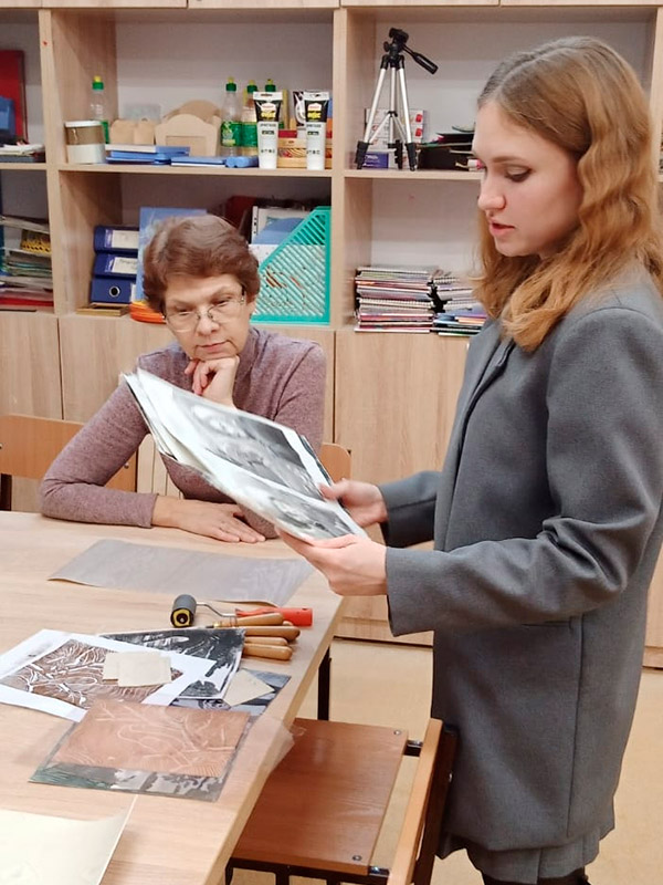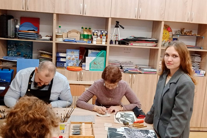 - Анастасия Дмитриевна Исакова, преподаватель отделения декоративно-прикладного искусства, познакомила участников с техникой линогравюры для начинающих