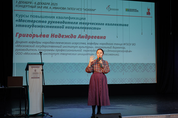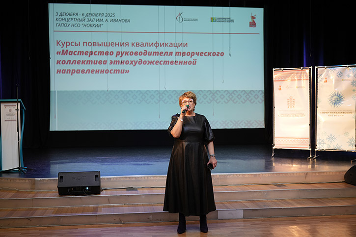 Курсы организовал методический центр колледжа при поддержке министерства культуры Новосибирской области. Тема: "Мастерство руководителя творческого коллектива этнохудожественной направленности". Слушатели - преподаватели детских музыкальных школ, детских школ искусств и специалисты учреждений культуры области. Накануне занятия проходили в заочном формате. Сегодня началась очная работа.
