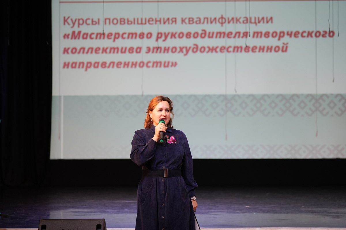 Надежда Андреевна поделилась, что ей очень радостно, что тема этнохореографии очень интересна руководителям фольклорных коллективов: "Традиционная хореография идёт в связке с песней, поэтому очень важно обладать навыками в этой сфере и знать большое количество форм, движения, жанров. И данные курсу помогают в составлении репертуаров, в обогащении своих знаний в традиционной культуре".