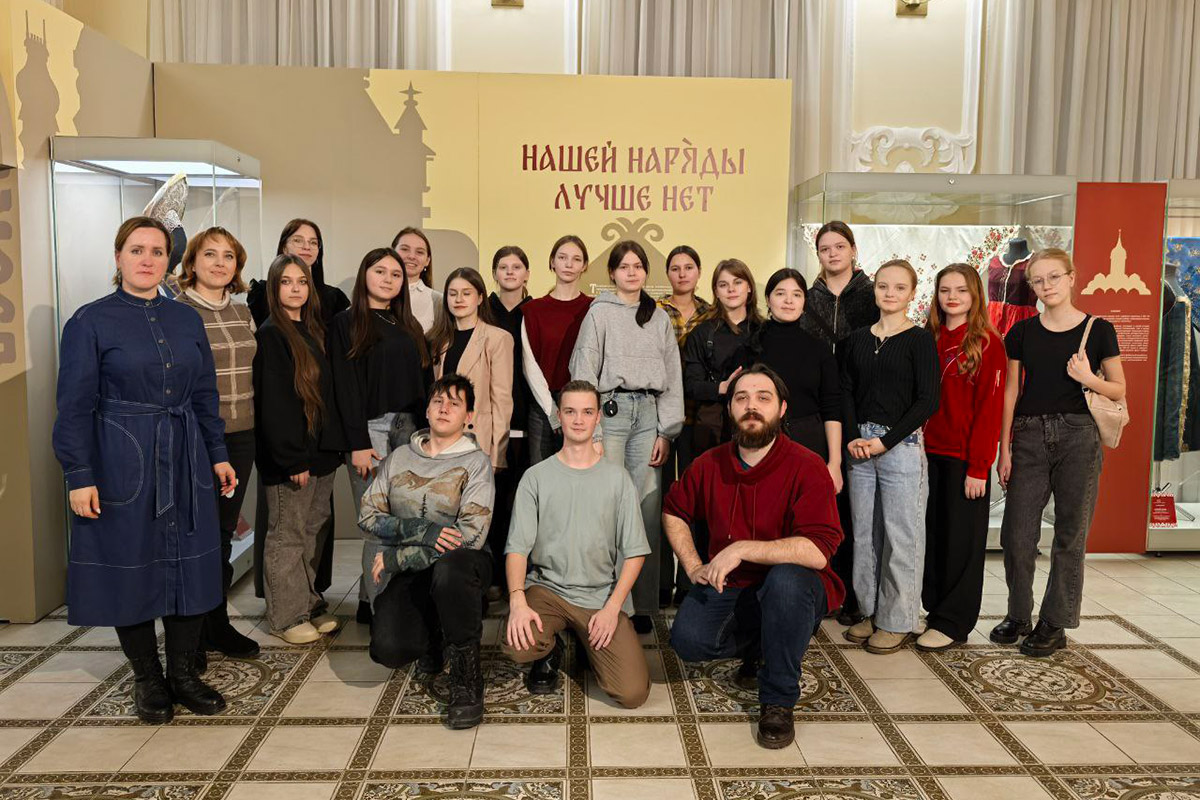 Преподаватели и студенты фольклорно-этнографического отделения посетили уникальную выставку "Нашей наря́ды лучше нет", открывшуюся в Краеведческом музее.