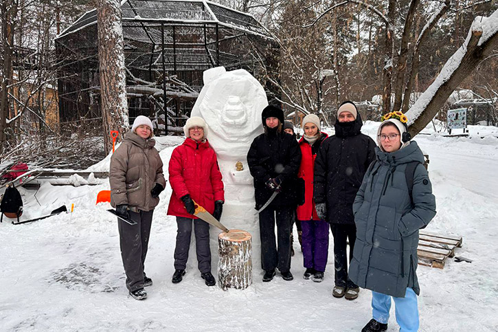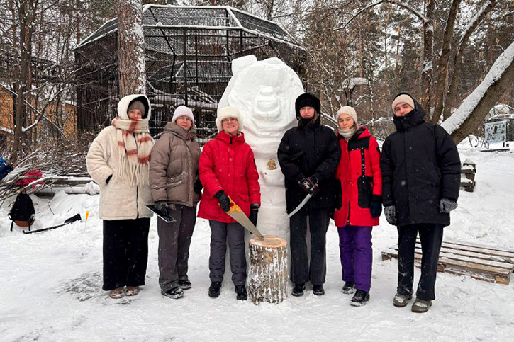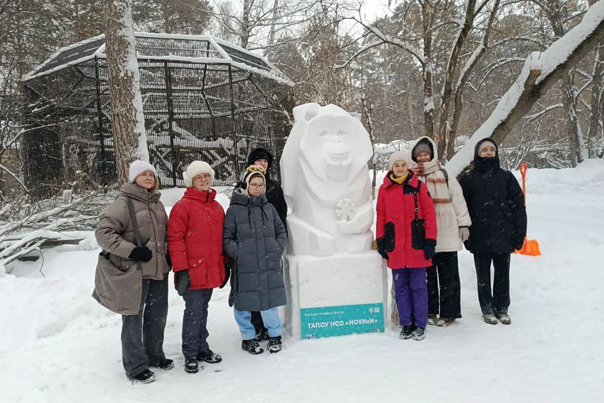 В Новосибирском зоопарке прошёл ежегодный фестиваль-конкурс "Снежная мастерская". И впервые в нём участвовала команда НОККиИ - студенты 3-4 курсов отделения ДПИ под руководством Наталии Викторовны Хабаровой.