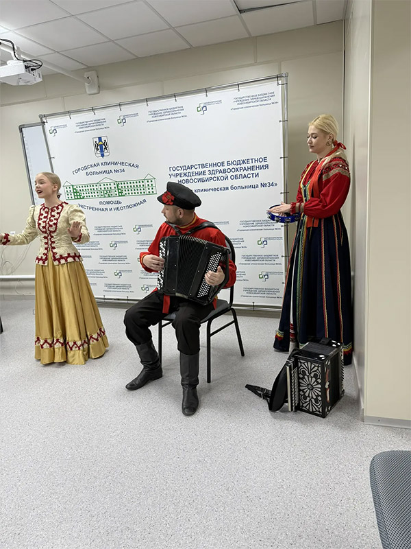 Подготовили особый подарок - праздничную программу для участников специальной военной операции, которые проходят лечение в больнице №34. Перед бойцами выступили: Софья Сенькова, Алиса Баскакова, Софья Рябкова, Анастасия Шмидт, Иван Любас. Концертмейстер: Антон Владимирович Грибанов.