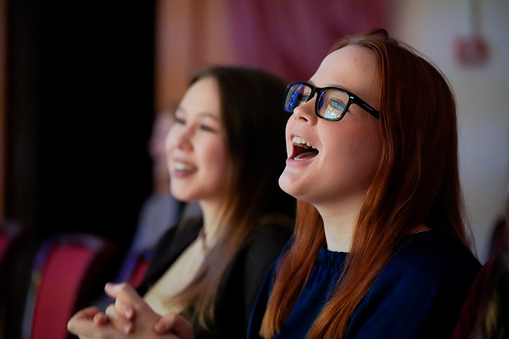 Вели мероприятие Анастасия Миронова и Полина Галеева, которые сразу предложили гостям вечера создавать праздник вместе. "Этот зал - наш второй дом, а сегодня в нём рождается особая, новогодняя магия", - обратились ведущие к собравшимся.