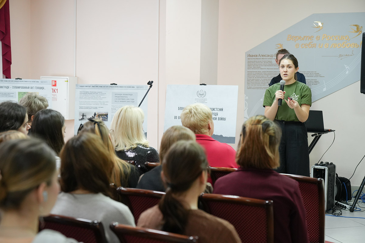 Выставка открылась в канун исторической даты. 27 января - День полного освобождения Ленинграда от фашистской блокады. Студентам напомнили о нечеловеческой цене тех 872 дней - столько гитлеровские войска осаждали Северную столицу. В планах оккупантов было стереть город с земли и уничтожить всех его жителей. Блокада Ленинграда считается самой смертоносной осадой в мировой истории. В 2022 году суд Санкт-Петербурга признал блокаду актом геноцида.