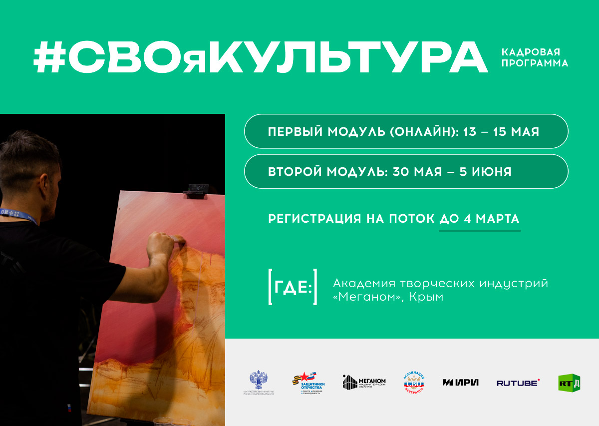 "#СВОяКУЛЬТУРА" - это "точка входа" участников и ветеранов СВО, а также членов их семей, в сферу культуры. Участники познакомятся с ключевыми направлениями - "литература", "театр", "кино", "музыка", "живопись" - и узнают, какие возможности есть для дальнейшего развития: обучение, трудоустройство, проектная и просветительская деятельность. Программа будет включать в себя лекции, встречи с профессионалами творческих индустрий и культурно-просветительские мероприятия.