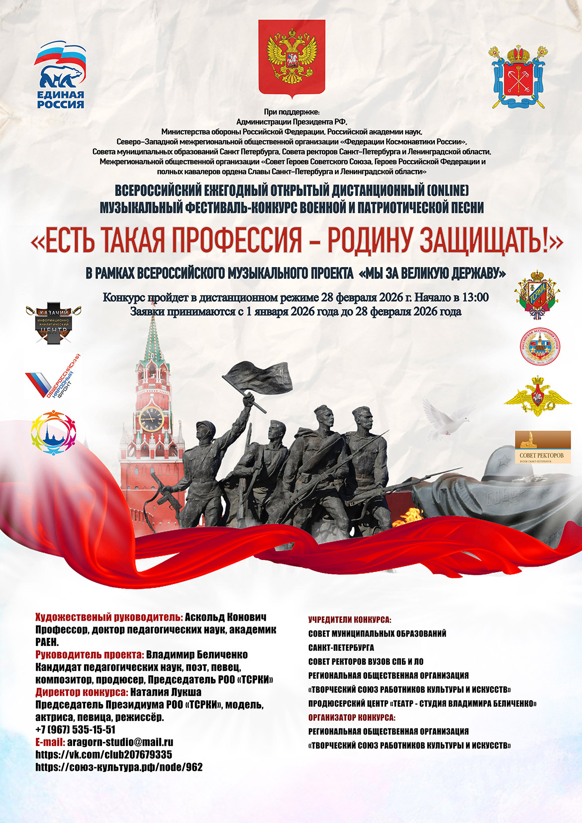 Конкурс "Есть такая профессия - Родину защищать!" посвящён Дню защитника Отечества и проводится в рамках проекта "Мы за Великую Державу" при поддержке: