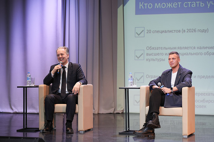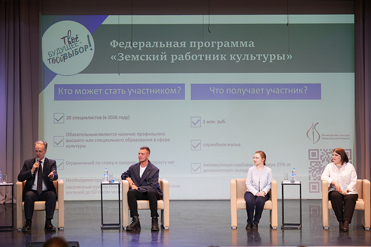 Заместитель министра в разговоре со студентами подробно остановился на условиях программы "Земский работник культуры" и ответил на самые острые вопросы: облагается ли сумма налогом? Нет, миллион выплачивается полностью. Есть ли возрастные ограничения? Нет, но участник должен быть гражданином России. Сколько вакансий предусмотрено по программе в Новосибирской области? В этом году - 20 мест. Актуальные предложения от учреждений культуры появятся в открытом доступе уже в марте. Владимир Геннадьевич подчеркнул: программа направлена на то, чтобы талантливые специалисты оставались в профессии и при этом имели достойную поддержку от государства.