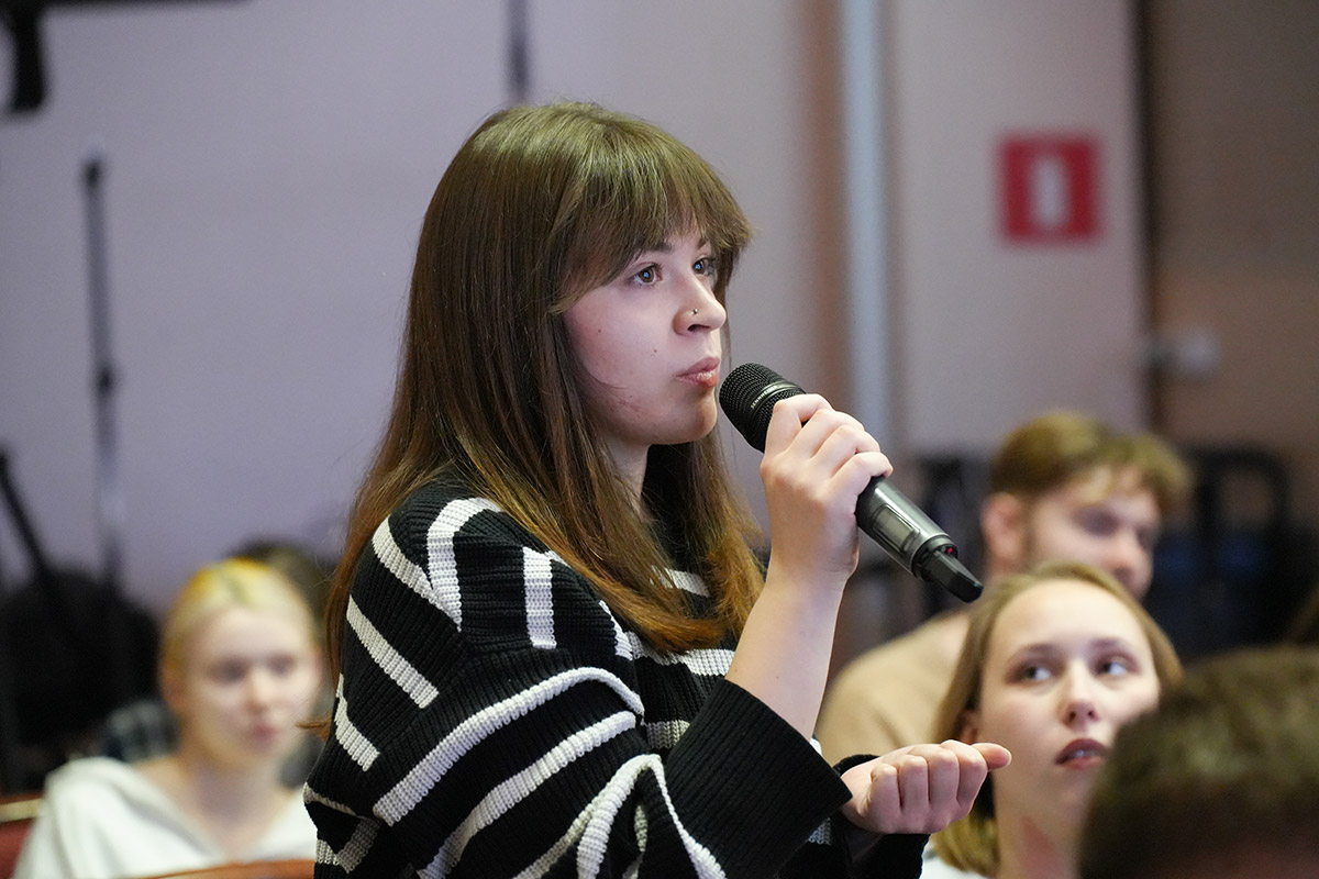 В интервью студентке НОККиИ, члену Молодежного совета Алёне Лукиной, замминистра отдельно отметил живой интерес ребят к теме встречи: