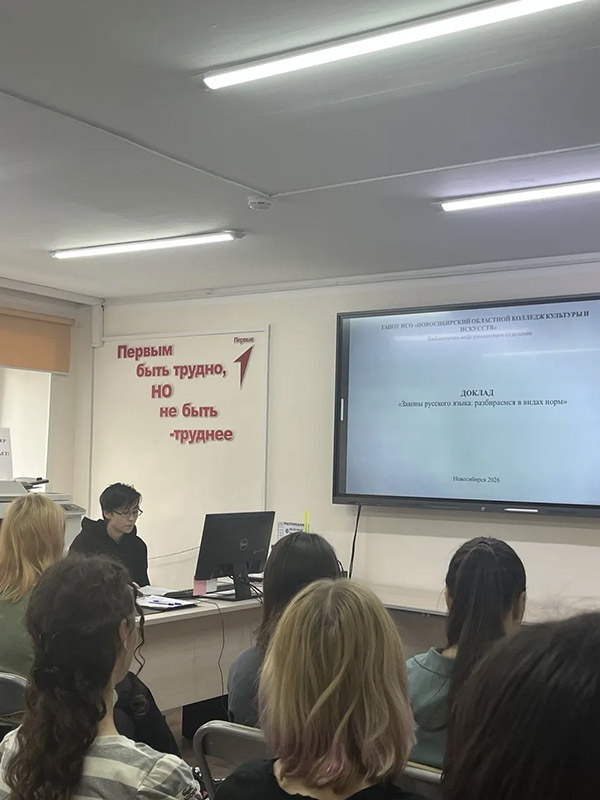 С 1 марта 2026 года в России вступил в силу Федеральный закон №168-ФЗ, ограничивающий использование иностранных слов в вывесках, рекламе, сайтах и другой информации для потребителей. Русский язык становится обязательным, а иностранные слова допускаются только как дублирующий перевод, не превышающий русский по размеру и заметности. Этот закон дал импульс студентам библиотечно-информационного отделения НОККиИ ещё раз обратиться к нормам и правилам родного языка.