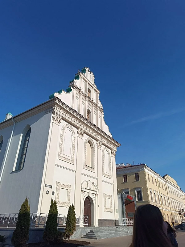 Студентки отделения ДПИ Диана Яркиева и Екатерина Хватова также не теряют времени даром. Они побывали на просмотре третьего курса Минской государственной гимназии-колледжа искусств, а после отправились гулять по набережной реки Свислочь и зашли в Кафедральный собор Сошествия Святого Духа.