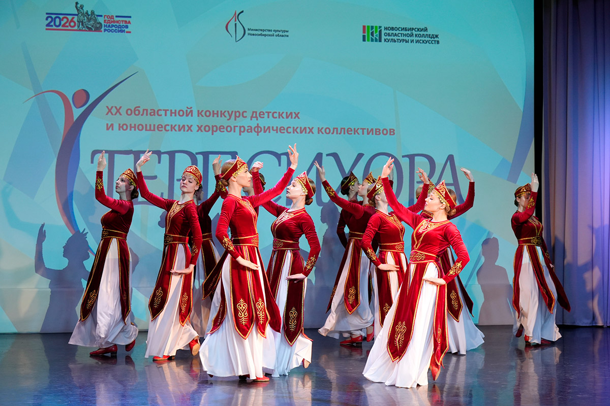 XX областной конкурс детских и юношеских хореографических коллективов "Терпсихора". Мероприятие посвятили Году единства народов России, и оно состоялось при поддержке министерства культуры Новосибирской области в рамках межведомственного проекта "Культура для школьников".
