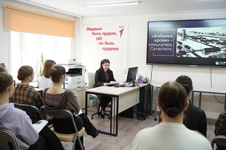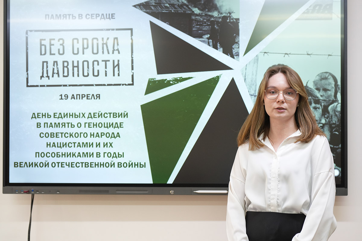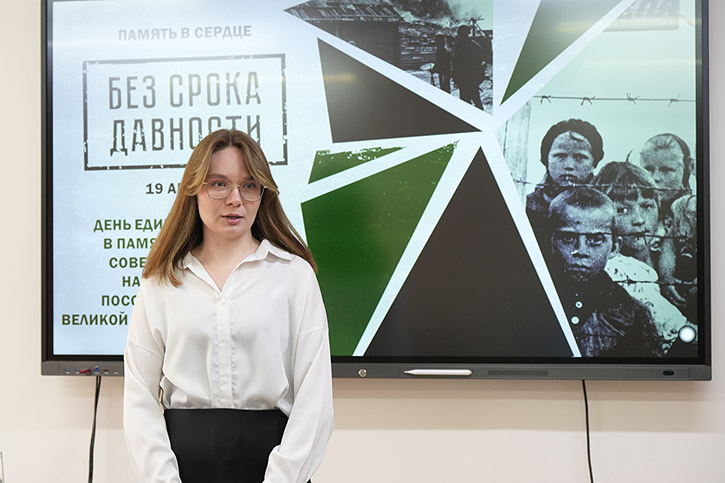 О масштабах трагедии, преступлениях нацистов и о том, как важно сохранять историческую правду, со студентами говорили преподаватель истории и обществознания Анна Дмитриевна Быстрова и активистка Всероссийского общественного движения "Волонтёры Победы", студентка 3 курса отделения ДПИ Анастасия Марченко.