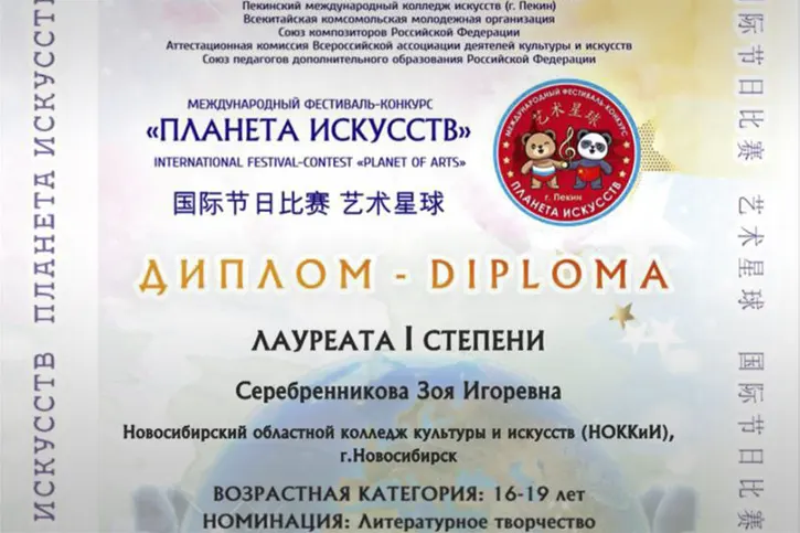 СТУДЕНТКА ОТДЕЛЕНИЯ СКД ПОБЕДИЛА В МЕЖДУНАРОДНОМ КОНКУРСЕ