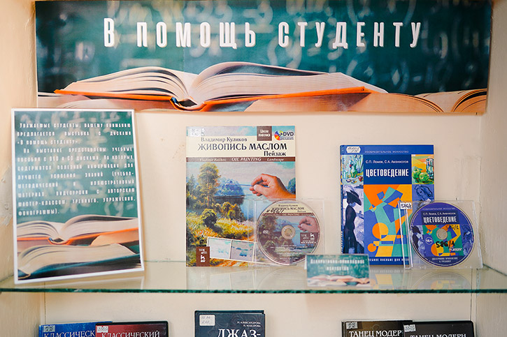 Библиотека НОККиИ расположена на втором этаже учебного корпуса и занимает 5 кабинетов.