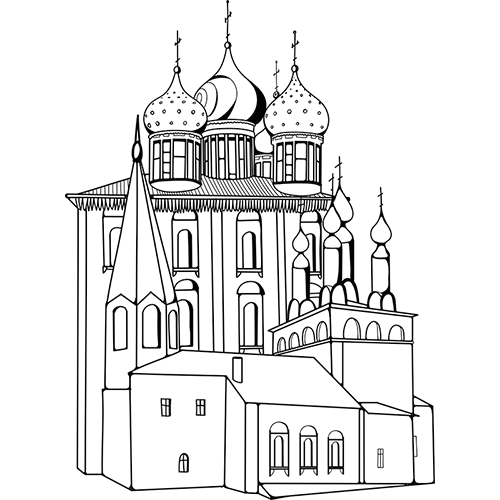 Екатерина Хватова выполнила точную и изящную отрисовку Успенского собора Рязанского кремля - главной архитектурной доминанты города.