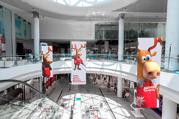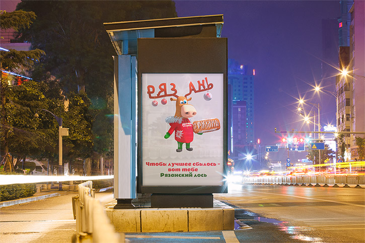 Завершающим и стратегически важным этапом проекта стала подготовка мокапов студией дизайна. Эта работа позволила перевести созданного 3D-лося из виртуального пространства в среду его будущего обитания, наглядно продемонстрировав его потенциал в городской среде и мерчендайзе.