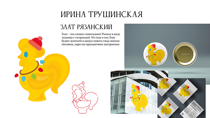 Этот элемент не только сделал маскота визуально богаче, но и превратил его в настоящего носителя культурного кода Рязани, демонстрируя, как современный дизайн может вести диалог с историческим наследием.
