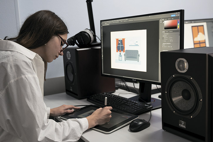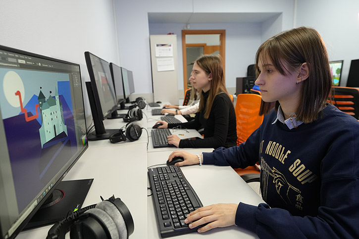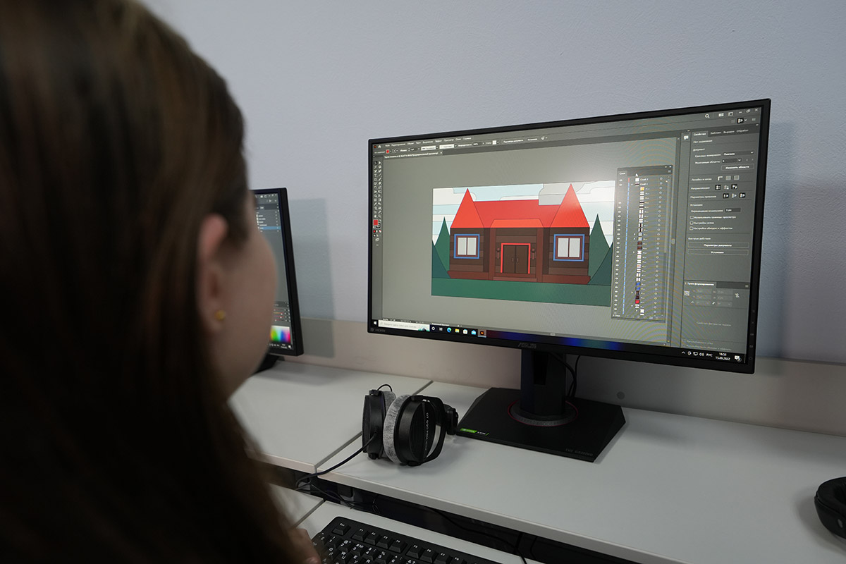 Студия дизайна оборудована 10 рабочими местами. Каждому обучающемуся предоставлен графический планшет с большой рабочей областью, который позволяет рисовать качественные и проработанные иллюстрации.