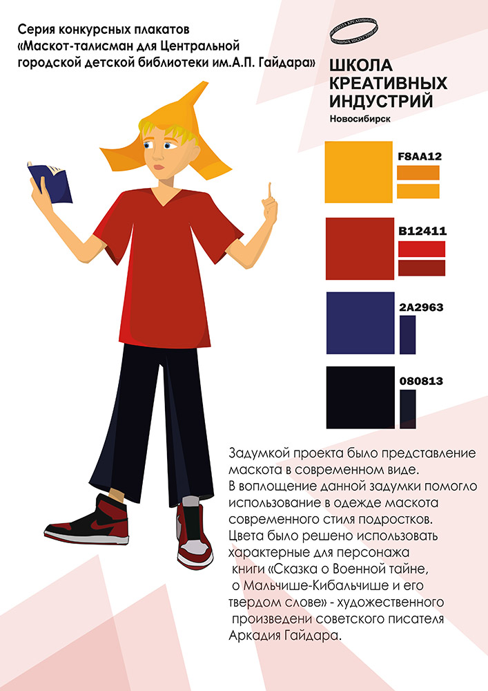 В середине учебного года мы работали над одним из самых интересных проектов. Гайдартека. С предложением о сотрудничестве к нам обратилась Центральная городская детская библиотека им. А.П.Гайдара. Им нужен был маскот - персонаж, талисман, которого они могли бы использовать в различных рекламных целях, на промо-продукции и который помог бы библиотеке продвигать свой бренд. Библиотека подготовила для нас техническое задание. Каждый ученик разработал свой вариант маскота с учетом пожеланий от заказчика. Решения были крайне разнообразны. Кто-то ориентировался на название, кто-то исследовал мир большой литературы и предлагал интересные нестандартные решения.