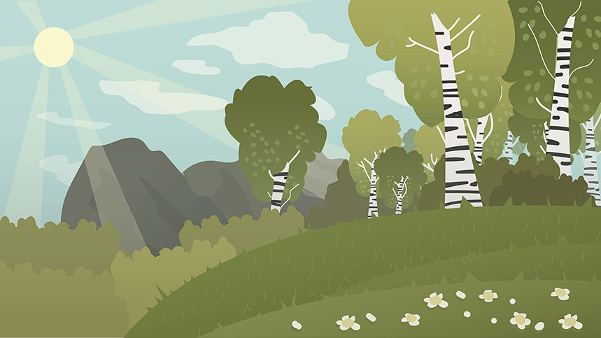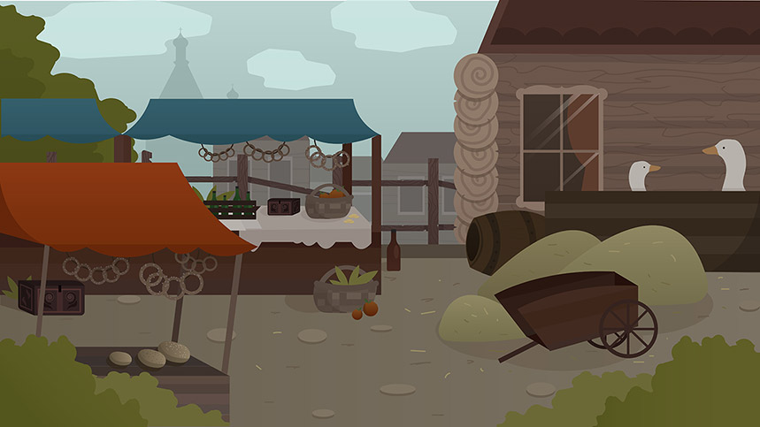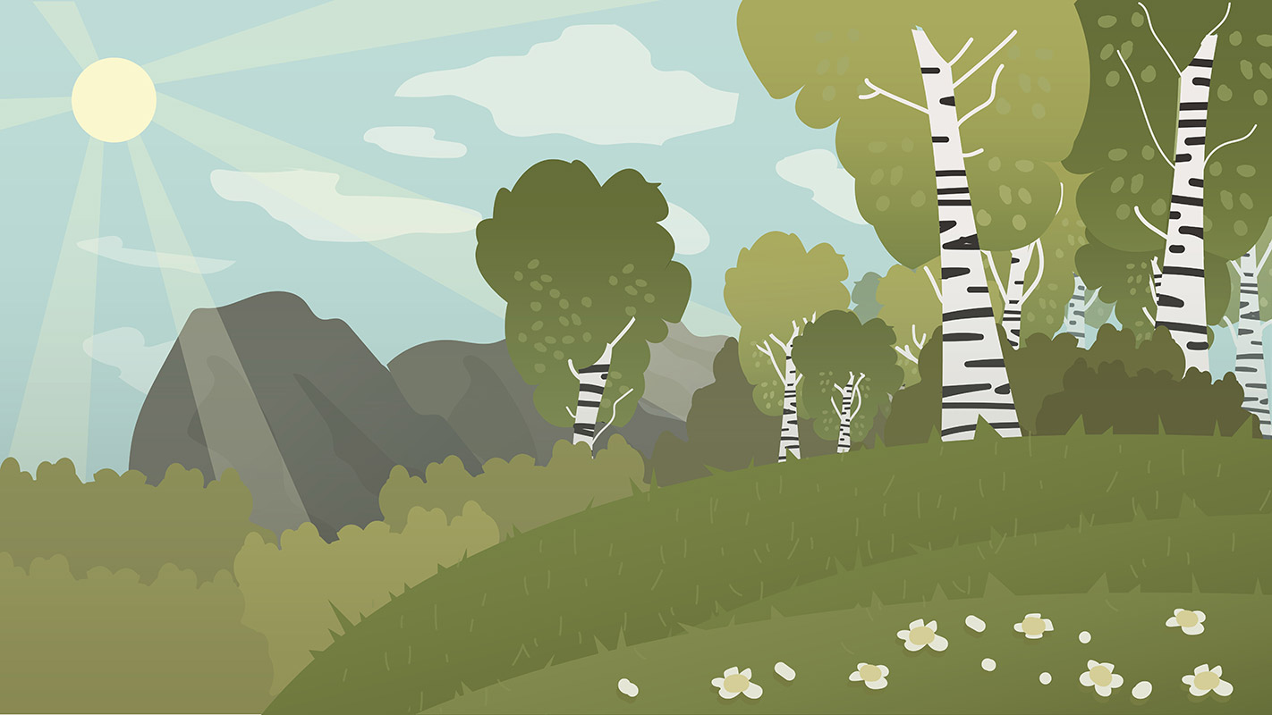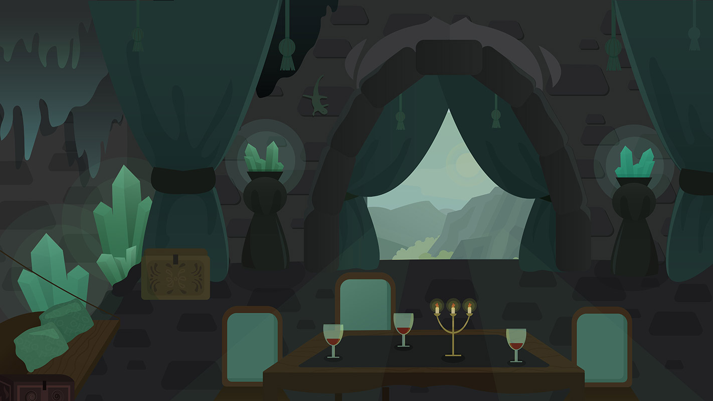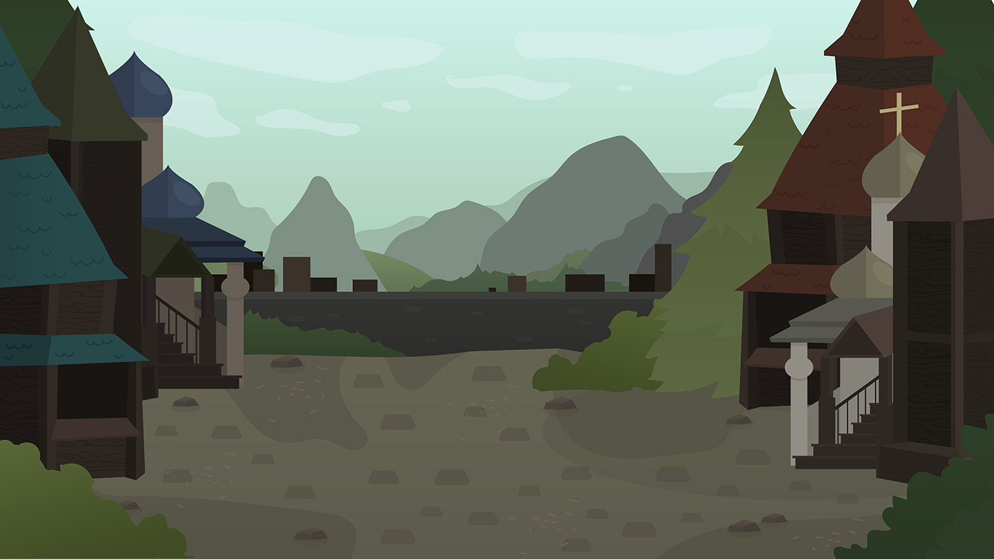 Большую работу для создания фонов к спектаклю "Хозяйка медной горы" проделала Диана Мурахтина. На основе референсов от режиссера-постановщиков в соответствии с выбранным стилем она создала серию фоновых иллюстраций для основных мест действия произведения. Среди них были: ярморочная площадь, полянка, лес, лесная опушка, комната Хозяйки медной Горы, пасторали сада, уличный вид, камера и общий вид на горный пейзаж.