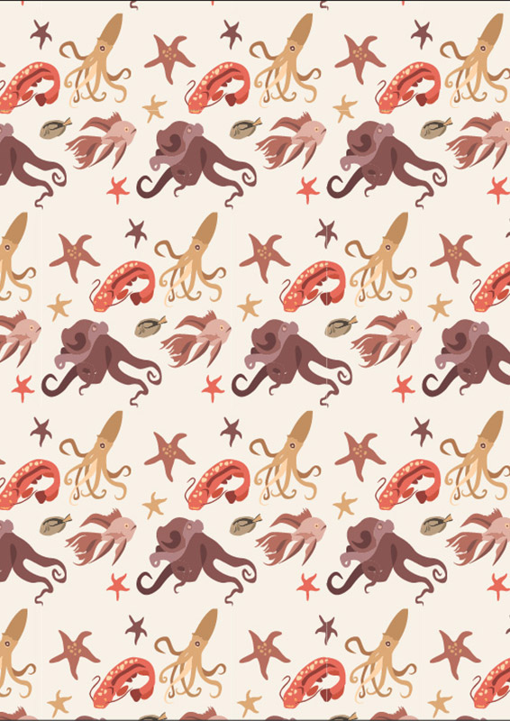 Ученики нашей студии подготовили серию паттернов и плакатов на их основе. Тема для паттерна была свободной, так что нам удалось увидеть очень необычные решения, например, коровью мистерию от Дарьи Заварзиной или овощи-овощи-овощи от Таисии Швец. Дарья так же сделала летний паттерн. Елена Гуськова подготовила абстрактные паттерны. Анна Боровских - паттерны с едой, из которых вышли отличные рекламные плакаты. Хеллоуин стал темой работы Вероники Стаценко. Мария Колбина сделала необычный узор в морской тематике, а Мария Денисова нашла самое удивительное решение - она сделала паттерн на основе вида панельных домов. Получилась очень интересная и разнообразная серия.