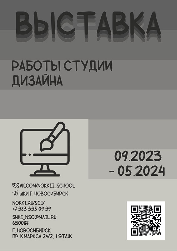 В рамках этого задания было необходимо создать афишу для постоянной экспозиции работ учеников студии дизайна ШКИ. Важно было использовать логотип школы, реальные контакты и инструмент "Переход". Но в процессе часть идей, пришедших к нашим ученикам требовала более иронического решения и это не требовало ограничений. Так что в рамках серии есть и работы, соответствующие условиям задания и забавные решения.