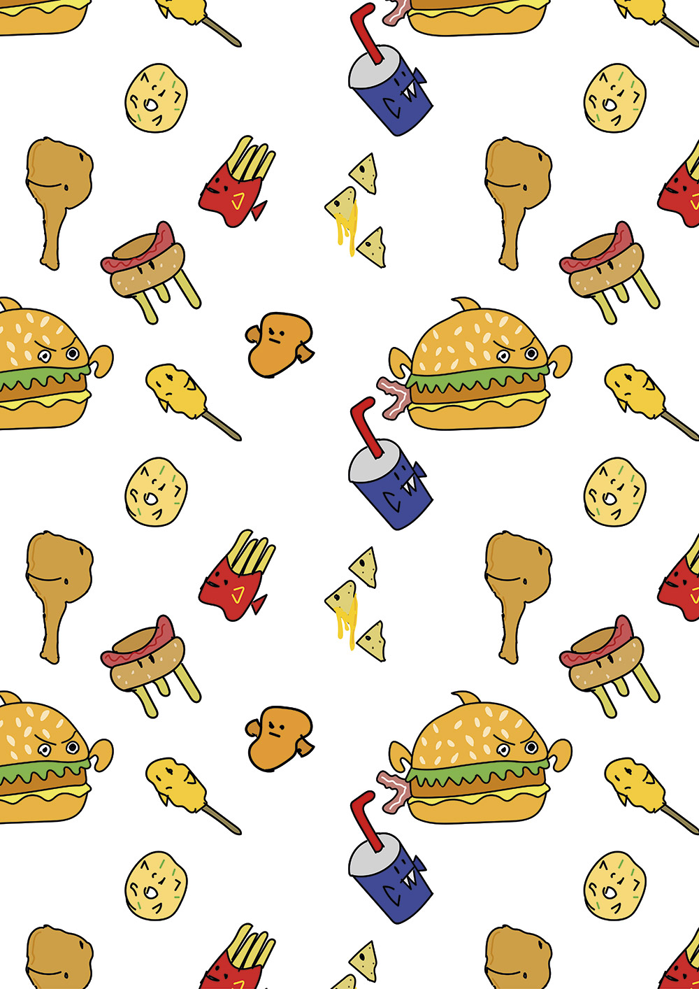 Дмитрий не остановился на создании запоминающегося символа. Он развил концепцию до полноценной графической системы, разработав тематический паттерн, который усиливает узнаваемость бренда. Завершенность и профессиональный подход демонстрируют мокапы, показывающие, как "Шарпбургер" оживает на упаковке, вывеске и мерче.