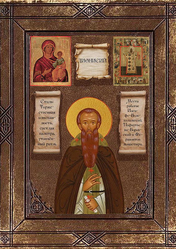 Дионисий - мастер торжественной легкости и царственной красоты. Его стиль знаменует переход к государственному величию Московской Руси. Утонченный колорит, изысканные пропорции и праздничная светоносность его фресок и икон воплощали идею Святой Руси как воплощения Небесного Царства на земле.