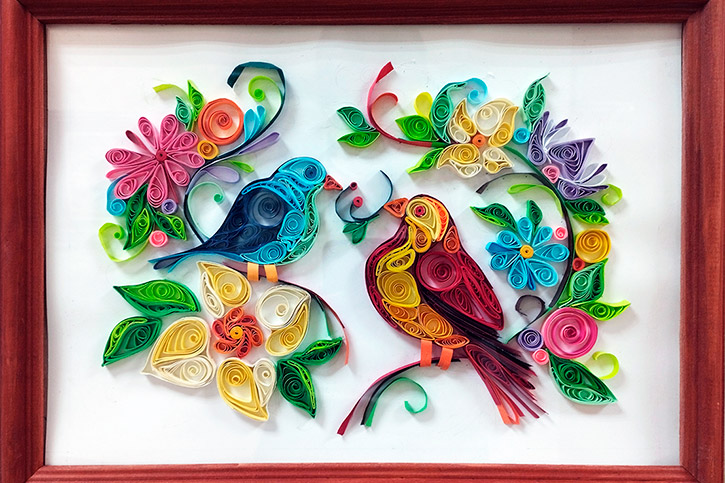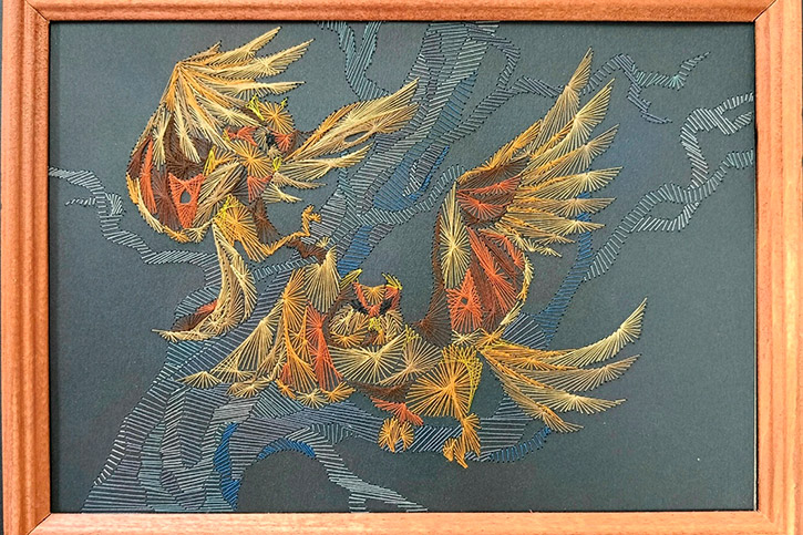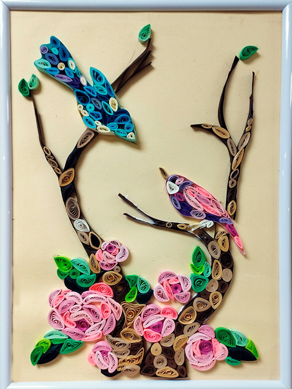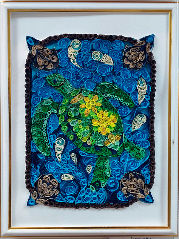 Выставка студенческих работ 2 курса выполненных на учебной практике для получения первичных профессиональных навыков в 4 семестре, включает изучение нескольких декоративных техник на разные темы. Работы представлены в техниках: прессованная флористика, квиллинг и изонить. Руководитель практики Шнурко Елена Павловна выбрала тему для работы в технике прессованной флористики "Пейзажи России". Студенты попытались заглянуть в разные уголки удивительных пейзажей России и передать увиденную природную и рукотворную красоту, созданную человеком в технике аппликации, передать богатство колорита тончайшими оттенками засушенных листьев и лепестков цветов. Для второй работы в технике квиллинг студенты первоначально освоили базовые формы бумагокручения. Из бумажных лент разной ширины выполнили скручивание спиралей, прямоугольных и квадратных форм, лепестков, каплей и т. д., из которых составили прекрасные изображения животных, цветов и пейзажей. Цветовое решение каждой работы подобрано индивидуально для наибольшей выразительности. Следующая работа выполнена в технике изонить. Первые две технике это работа с клеем в технике аппликации, а изонить это вышивка по картону. Для вышивки студенты использовали разные цветные нити, золотые и серебрянные. Сюжеты вышивки также разнообразны. По итогу семестра у студентов получилось воссоздать чудесный мир природы в трех декоративных плоскостных панно. Изученные техники не требуют больших материальных затрат, но демонстрируют все разнообразие изобразительных и декоративных средств прикладного искусства.